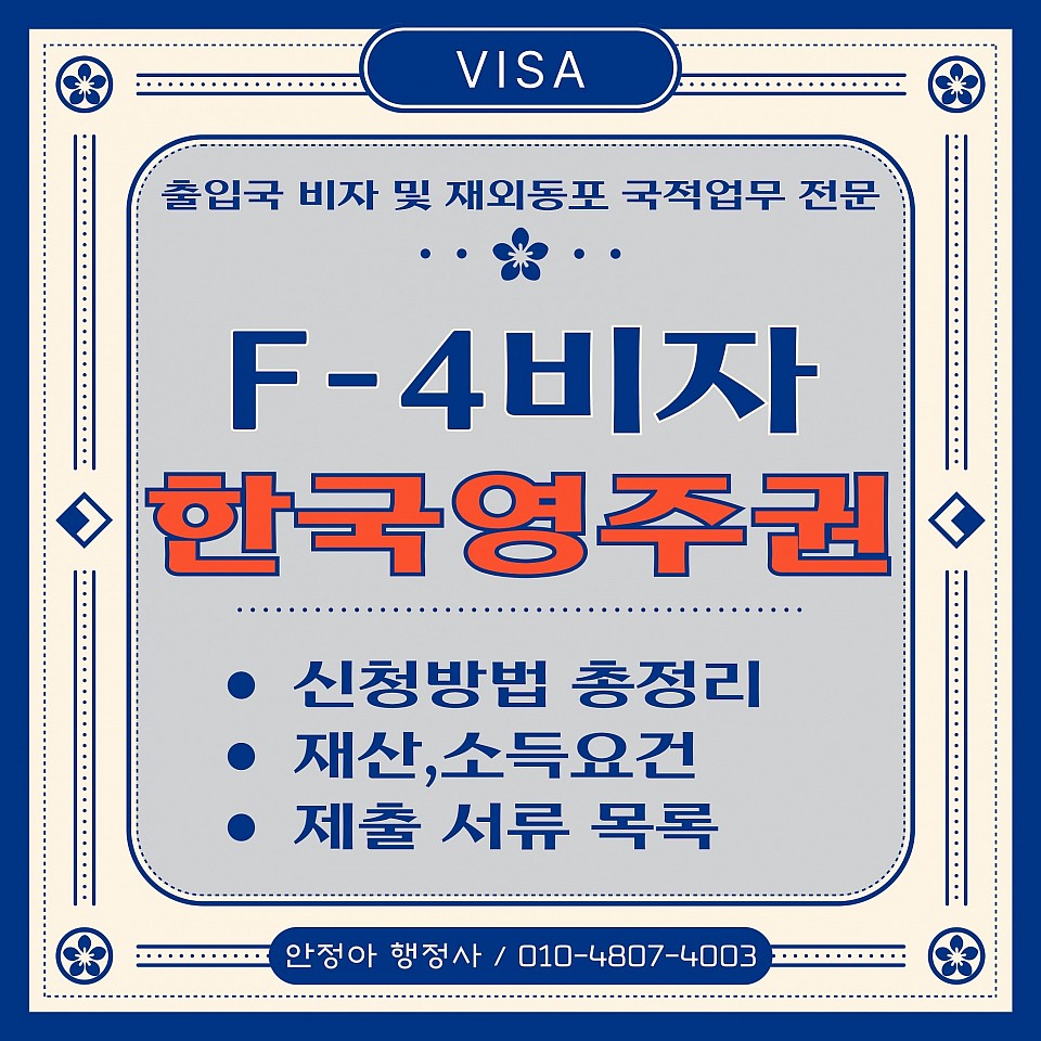 F4비자 영주권 신청 조건 소득 재산 기준 변경 서류 심사기간 총정리