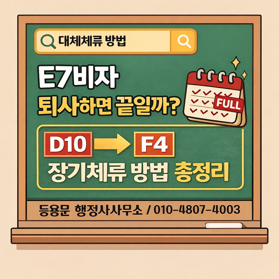오늘은 실제로 E7-1 비자 → D10 구직비자 → F4비자 변경까지 진행한 사례를 기준으로 가장 현실적인 체류 전략을 자세히 설명드리겠습니다.