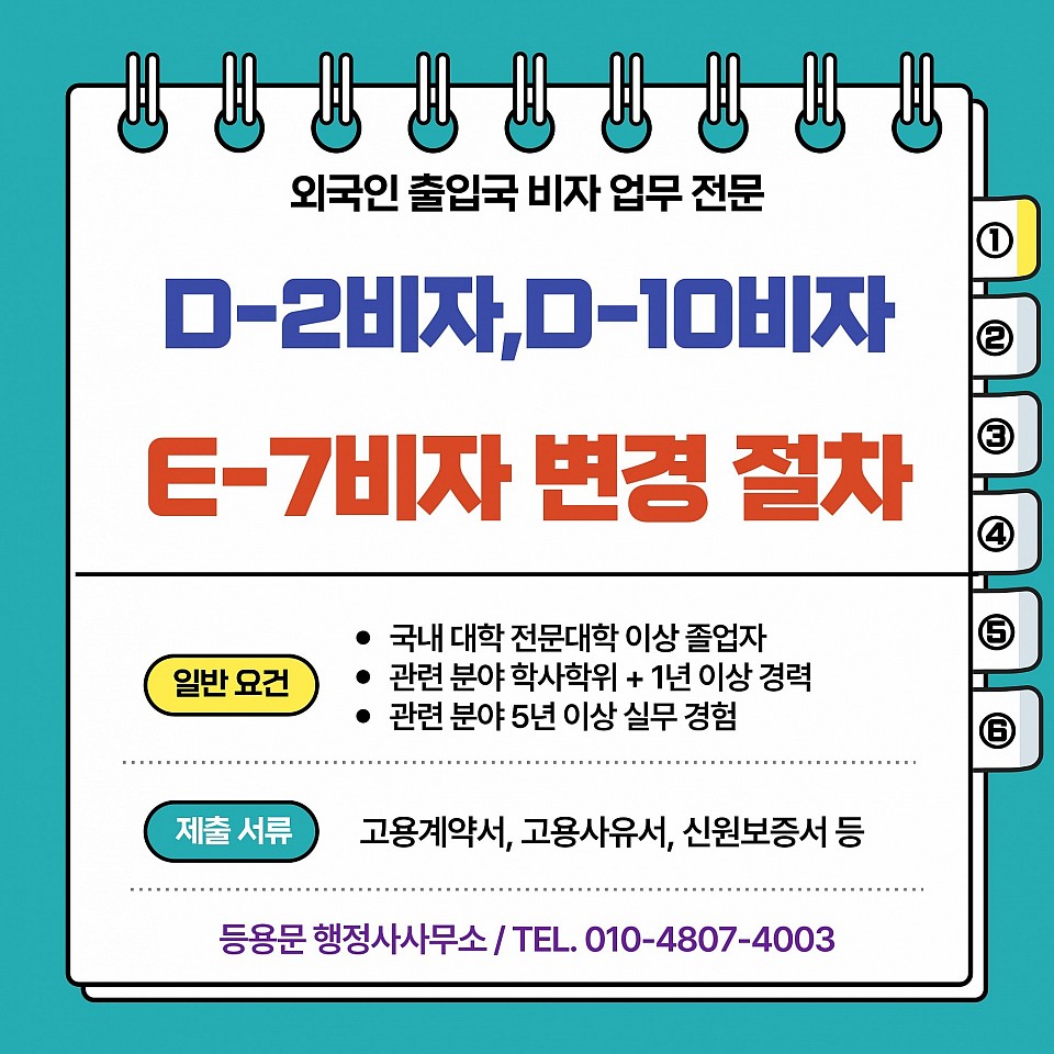 D2비자 D10비자 E7비자 변경 광고·홍보전문가 E71 신청 절차 총정리